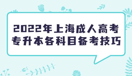 發布時間:2022-05-27 瀏覽次數:12052022年上海成人高考專升本該如何備考?上海專升本考試網給大家整理了相關詳解,希望大家都能考上自己心儀的學校。 -