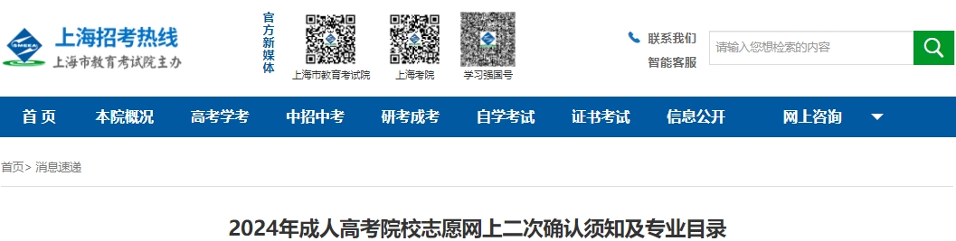 2024年上海成人高考院校志愿網(wǎng)上二次確認(rèn)須知及專(zhuān)業(yè)目錄