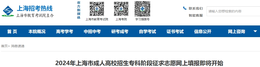 2024年上海成考招生專(zhuān)科階段征求志愿網(wǎng)上填報(bào)即將開(kāi)始