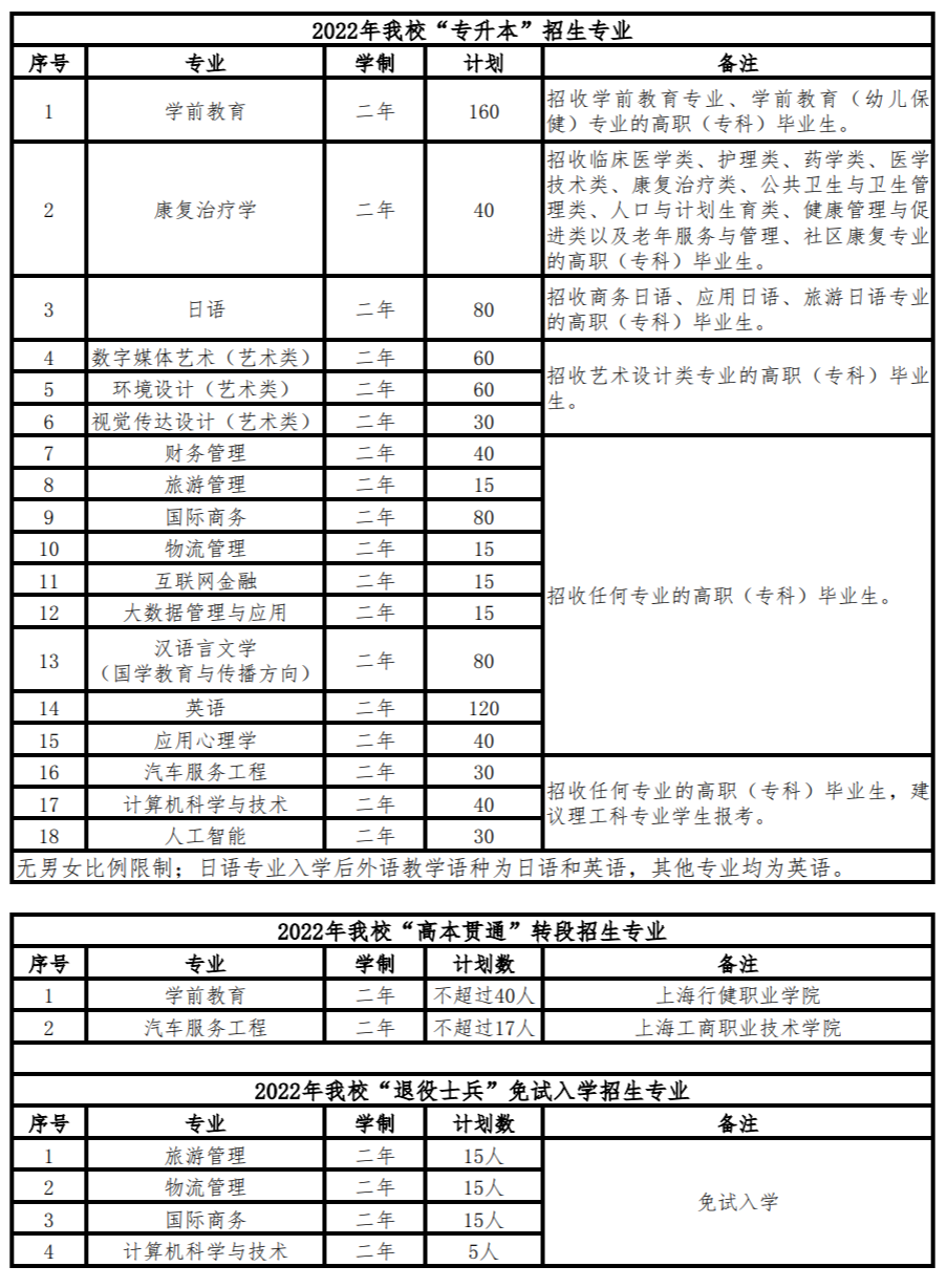 2022年上海師范大學(xué)天華學(xué)院專升本招生簡章